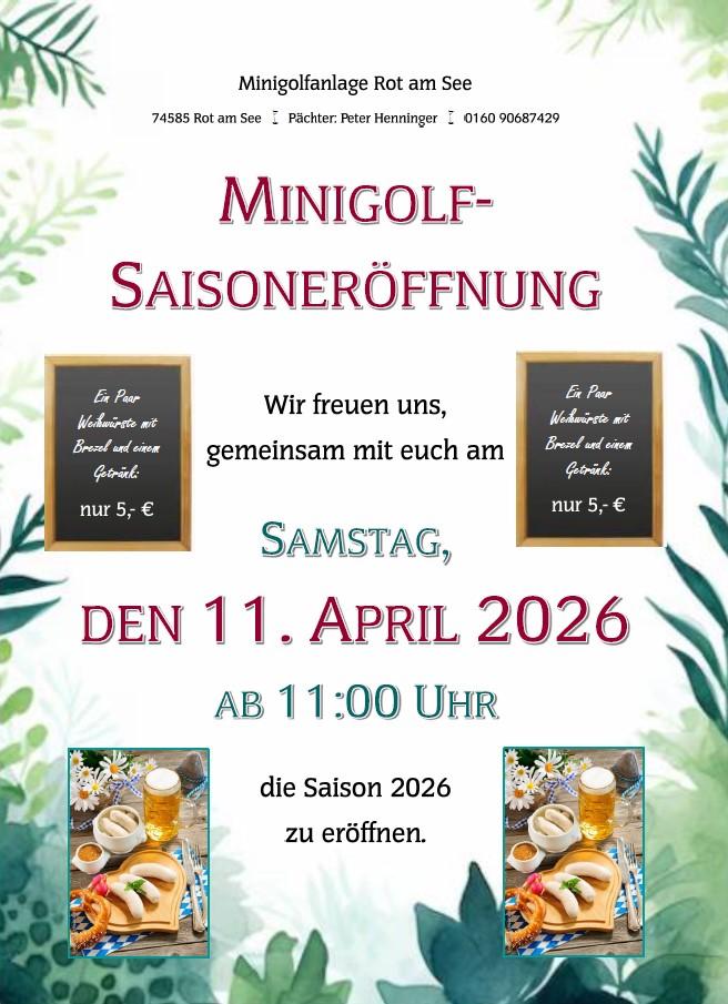 Die Minigolfanlage ist zu folgenden Zeiten geöffnet: