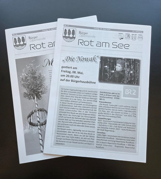 Ein wöchentlich erscheinendes Mitteilungsblatt unterrichtet Sie über die aktuellen Ereignisse in der Gemeinde, Sitzungsberichte, Termine, Veranstaltungen, Vereins- und kirchliche Mitteilungen sowie Privatanzeigen aus unserer Gemeinde und den Nachbargemeinden.